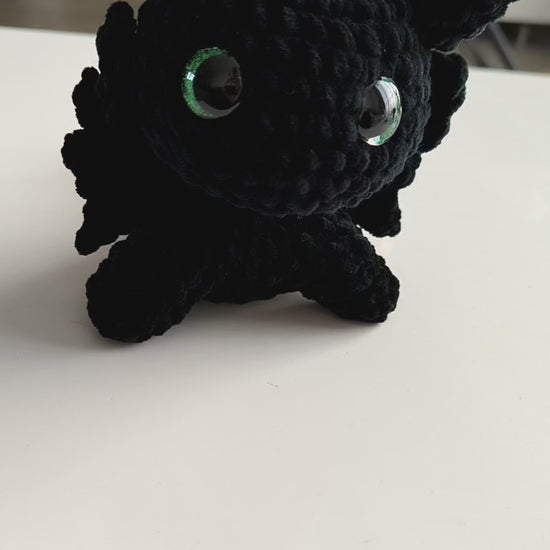 Krokmou est entièrement réalisé à la main au crochet, en laine pilou-pilou, pour un rendu à la fois tout doux, moelleux et réconfortant.